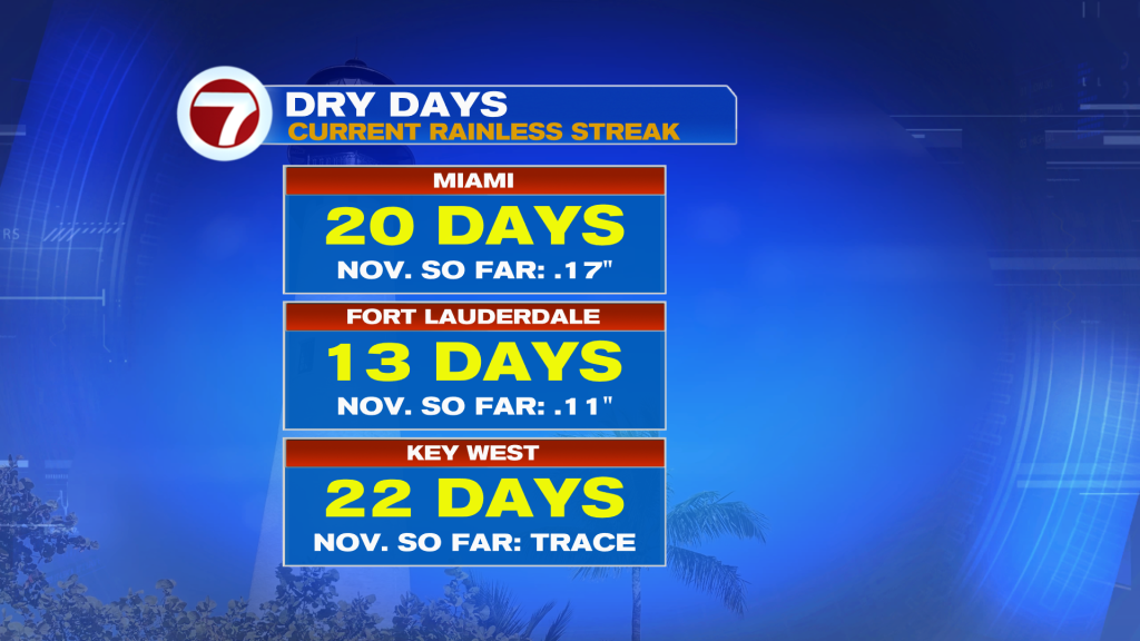 It’s been dry as of late with now a 20-day-long dry streak for Miami as of Saturday and even longer for Key West.