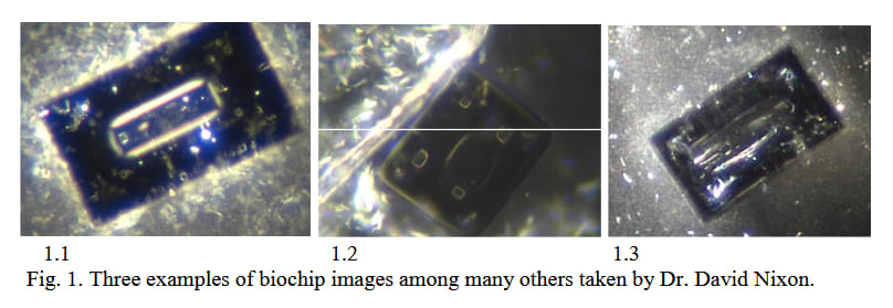 Fig. 1. Three examples of bio-chip images among many others taken by Dr. David Nixon.