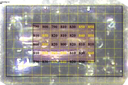 Fig. 3 shows the values of the silicon signal magnitude in each grid. A strong signal above 800 cm indicates the presence of a silicon crystal, on which microprocessors are set. Current microprocessors with low computing power can be very small.