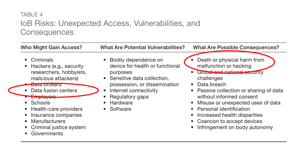 Here is an interesting list of who might gain access of the IOB hardware - the third bullet on the left side lists Data Fusion Centers. For those who don’t know what a data fusion center is, here is a definition: